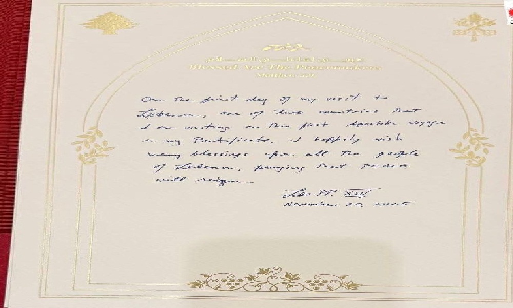 رسالة من البابا في سجل الشرف في القصر الرئاسي