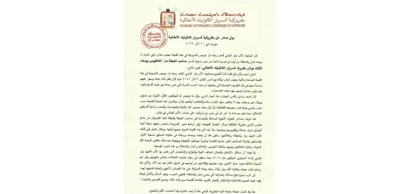 البطريرك يونان ينعى الاب الراعي: نستذكر بالإمتنان والعرفان مواقفه النبيلة