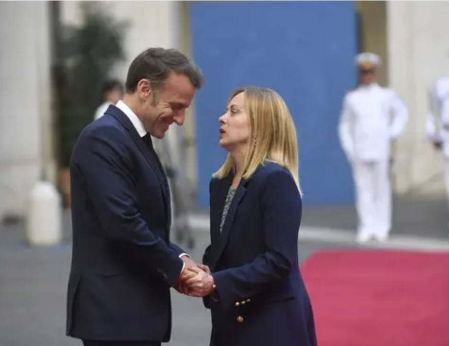 بالفيديو:عناق حارّ.. لقطة دبلوماسية “غير محسوبة” بين ماكرون وميلوني