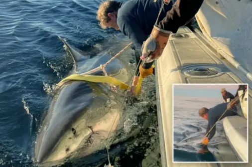 ووفق موقع “نيويورك بوست”، يُعرف القرش العملاق باسم “كونتندر “(Contender)، ويبلغ طوله نحو 14 قدمًا (أي 4.2 أمتار) ويزن حوالي 750 كغ.