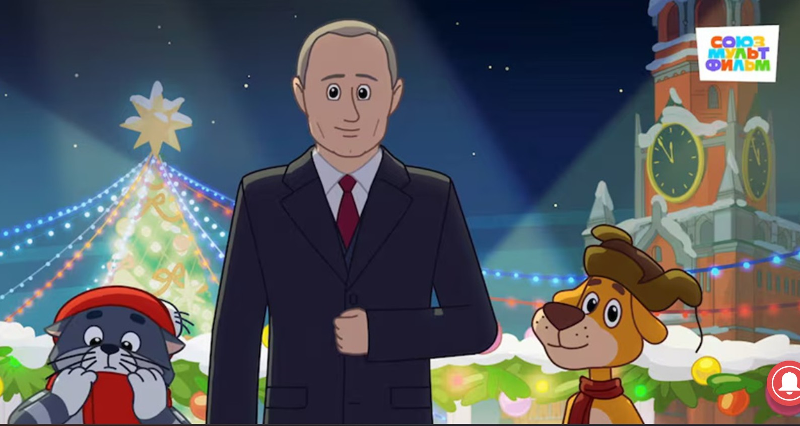 بوتين يتحول لشخصية كرتونية ويحيي الأطفال بالعام الجديد