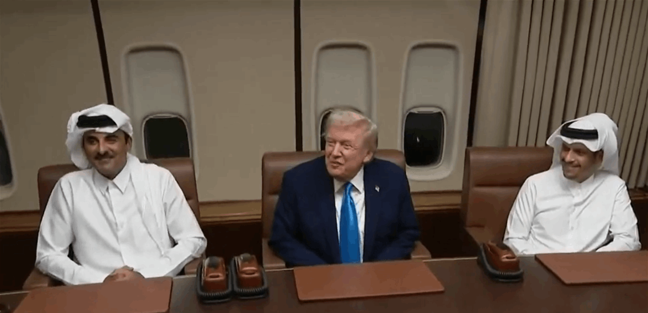 على متن الطائرة.. ترامب يلتقي أمير قطر (فيديو)