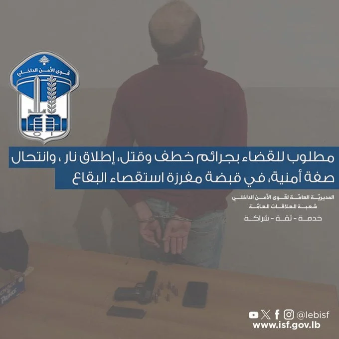بعد مراقبة دامت شهرين… “الأمن” يوقف مطلوبًا خطيرًا في البقاع