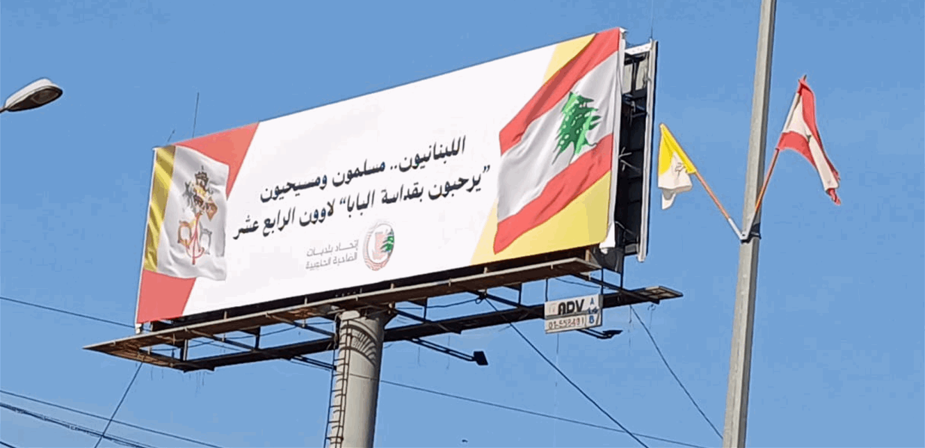 على طريق المطار.. إتحاد بلديات الضاحية يرفع لافتة ترحيبية بالبابا