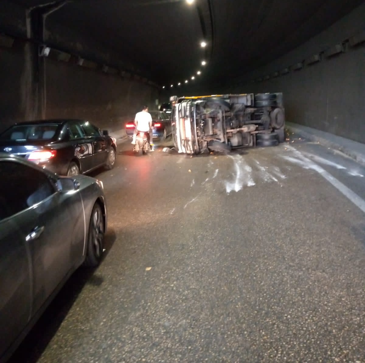 بالصورة – تسرّب مازوت.. احذروا نفق المطار!