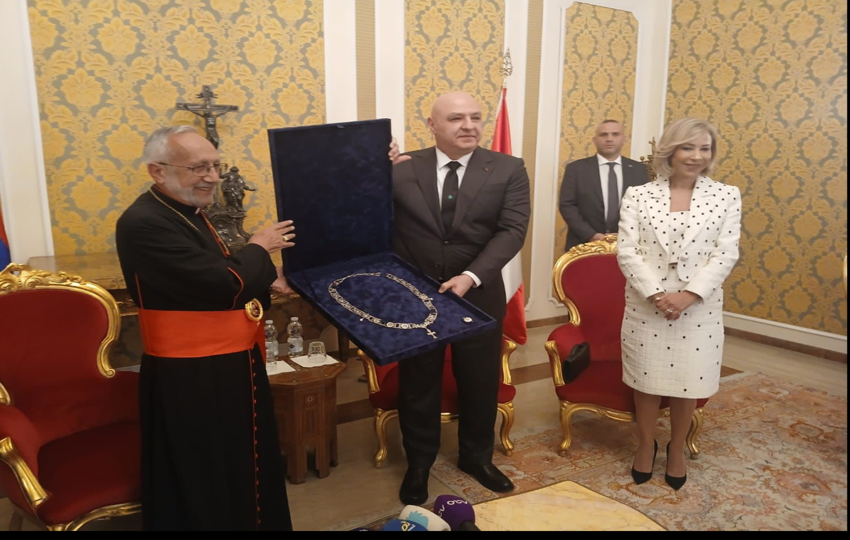 وقال: “في زمن يكثر فيه الكلام ويقلّ فيه الفعل تأتي خطوتكم اليوم فخامة الرئيس كفعل رجاء يزرع في القلوب ويعيد إلينا صورة لبنان الرسالة لذلك أحببنا أن نقيّم هذه المميزات النبيلة في شخصكم أولا ثم كقائد ورئيس للبنان وأن نقلدكم “وسام صليب الإيمان” وهو الوسام الأعلى في بطريركيتنا الأرمنية الكاثوليكية”.