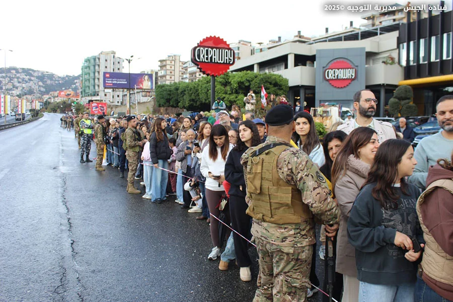 أعلنت قيادة الجيش – مديرية التوجيه، في بيان، أنّ المؤسسة العسكرية تنفّذ سلسلة تدابير أمنية استثنائية بمناسبة زيارة قداسة البابا لاوون الرابع عشر إلى لبنان، على أن تستمر هذه الإجراءات طوال فترة الزيارة وحتى اختتام برنامجها.