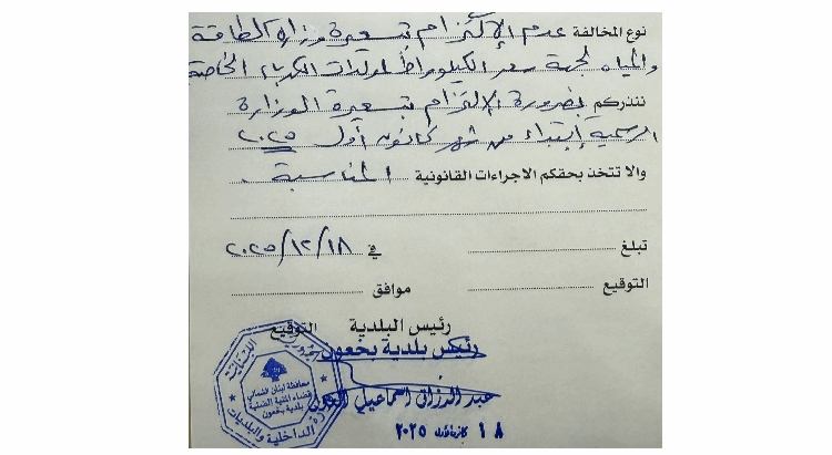 بلدية بخعون تحذّر أصحاب المولدات من مخالفة التعرفة الرسمية