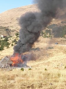 يعمل الدفاع المدني على إهماد حريق شب في البيت الخشبي لمحمية أرز تنورين الذي يقع عند مدخل المحمية على الطريق العام الذي يربط حدث الجبة بتنورين ويتعاون مع الدفاع المدني الأهالي وأعضاء من لجنة المحمية ومناشدات للجيش لإرسال طوافة للمساهمة في إطفاء النيران خوفاً من توسع رقعتها.