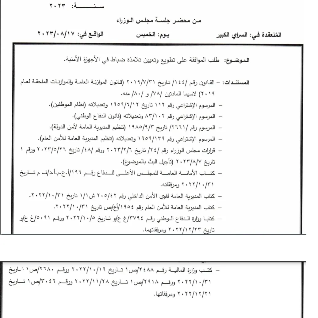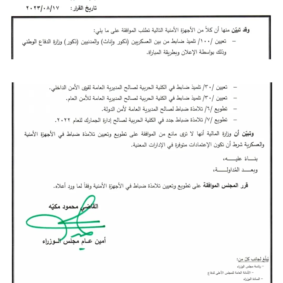 بالصور.. اليكم قرار مجلس الوزراء القاضي بفتح باب التطويع وتعيين تلامذة ضباط (اناث وذكور) في الاجهزة الامنية