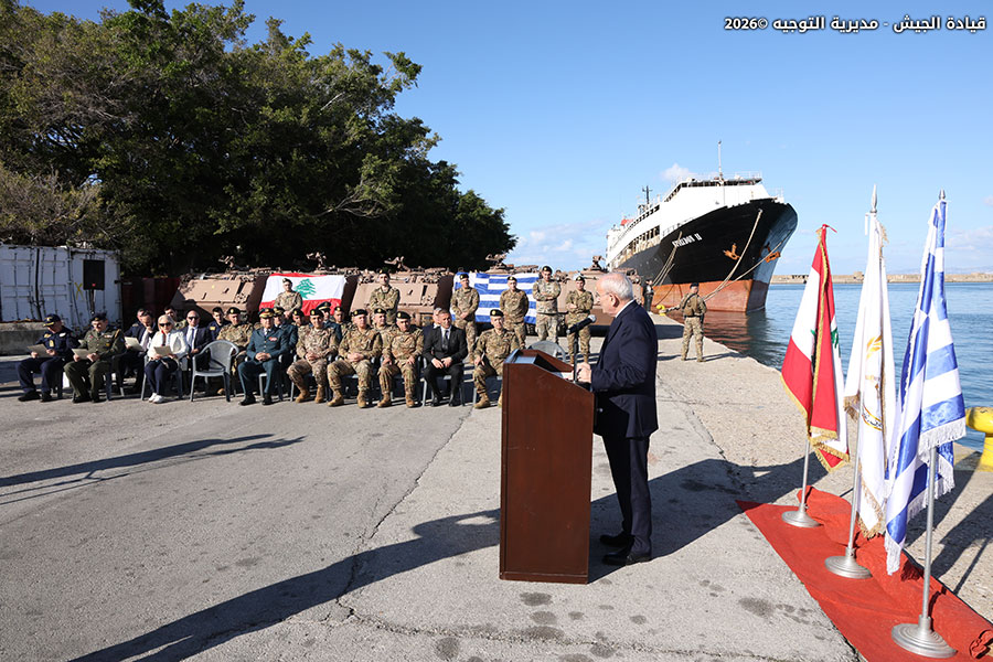 أقيم في مرفأ بيروت حفل تسلّم هبة مقدمة من قبل السلطات اليونانية للجيش، بحضور وزير الدفاع الوطني اللواء ميشال منسّى، والسفيرة اليونانية في لبنان Despina A Koukoulopoulou، ونائب رئيس الأركان للتجهيز على رأس وفد من قيادة الجيش، إلى جانب عدد من الضباط. وتضمنت الهبة 13 ناقلة جند من نوع (M113) و10 آليات مع قطع البدل العائدة لها.