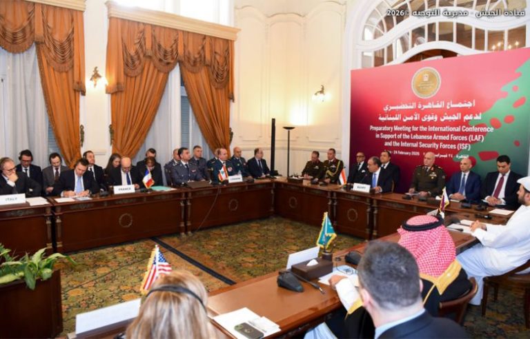 بتاريخ 24 /02 /2026، شارك قائد الجيش العماد رودولف هيكل والمدير العام لقوى الأمن الداخلي اللواء رائد عبد الله في اجتماع القاهرة التحضيري للمؤتمر الدولي لدعم الجيش وقوى الأمن الداخلي بدعوة من جمهورية مصر العربية، وبحضور وزير الخارجية والتعاون الدولي والمصريين بالخارج الدكتور بدر عبد العاطي، وممثلي دول اللجنة الخماسية المعنية بلبنان ومن بينهم: مستشار وزير الخارجية السعودي الأمير يزيد بن فرحان، الموفد الفرنسي الوزير السابق جان إيف لودريان، وزير الدولة في وزارة الخارجية القطرية محمد بن عبد العزيز الخليفي، إضافة إلى وفد ممثل عن الولايات المتحدة الأميركية، والأمين العام المساعد لجامعة الدول العربية حسام زكي، والمنسقة الخاصة للأمم المتحدة في لبنان Jeanine Hennis – Plasschaert، وممثلين عن: اللجنة العسكرية التقنية من أجل لبنان (MTC4L)، لجنة الإشراف على اتفاق وقف الأعمال العدائية (Mechanism)، قوة الأمم المتحدة المؤقتة في لبنان – اليونيفيل.