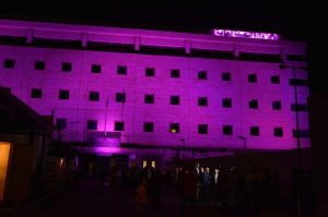 إضاءة مبنى وزارة الصحة باللون الزهري