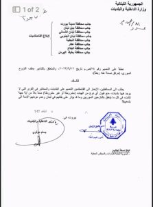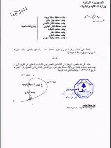 ونص الكتاب الثاني: “الإيعاز الى القائمقامين التعميم على البلديات والمخاتير، الإفادة دورياً كل خمسة عشرة يوماً عن التدابير المذكورة في التعميم 74 حول تنفيذ قرارات مجلس الوزراء بشأن أزمة النزوح السوري”.