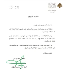 وزعت الامانة العامة لمجلس الوزراء جدول أعمال الجلسة التي يتحضّر رئيس حكومة تصريف الأعمال نجيب ميقاتي للدعوة إليها.