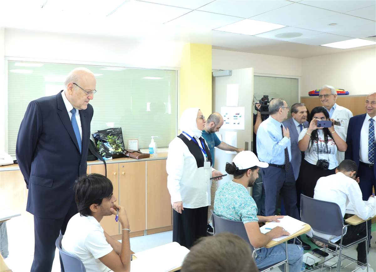 واطّلع الرئيس ميقاتي على سير الامتحانات هناك، كما تحدث مع عددٍ من الطلاب الذين يجرون الامتحانات ضمن أجواء وترتيبات تتناسب مع أوضاعهم.