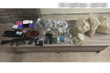 بتاريخ 5/8/2023، دهمت دورية من مديرية المخابرات تؤازرها وحدة من الجيش في منطقة المرح – الهرمل منازل مطلوبين لإقدامهم على الإتجار بالمخدرات وأوقفت المواطنين (ع.ح.ع.) و(ع.م.ع.) و(ع.ع.) وضبطت داخل المنازل كمية من المخدرات وأسلحة حربية وذخائر ومعدات لتصنيع المخدرات وعملة مزورة.