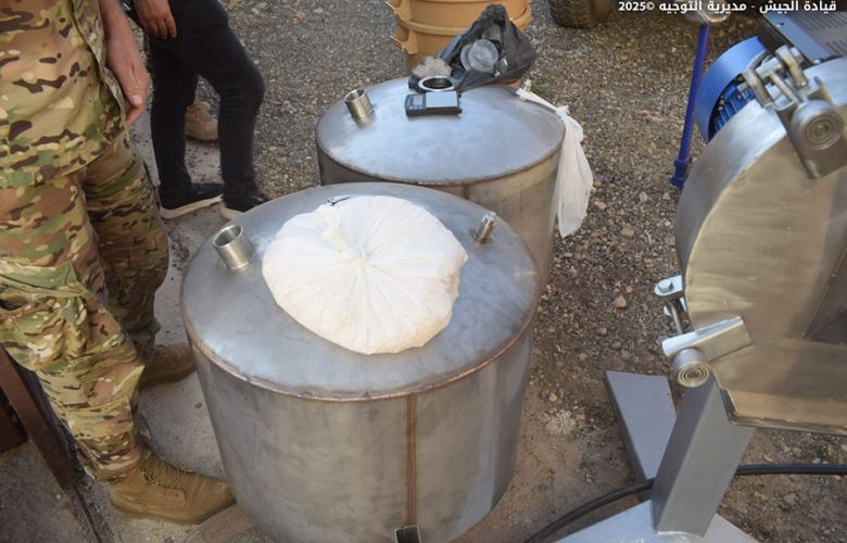 “بتاريخ 26 /8/ 2025، وضمن إطار مكافحة المخدرات وملاحقة العصابات التي تعمل على الاتجار بها وترويجها، دهمت وحدة من الجيش تؤازرها دورية من مديرية المخابرات منازل مطلوبين في بلدة بوداي – بعلبك وضبطت معملًا لتصنيع المخدرات وكمية كبيرة من المواد الأولية المستخدمة في تصنيعها.