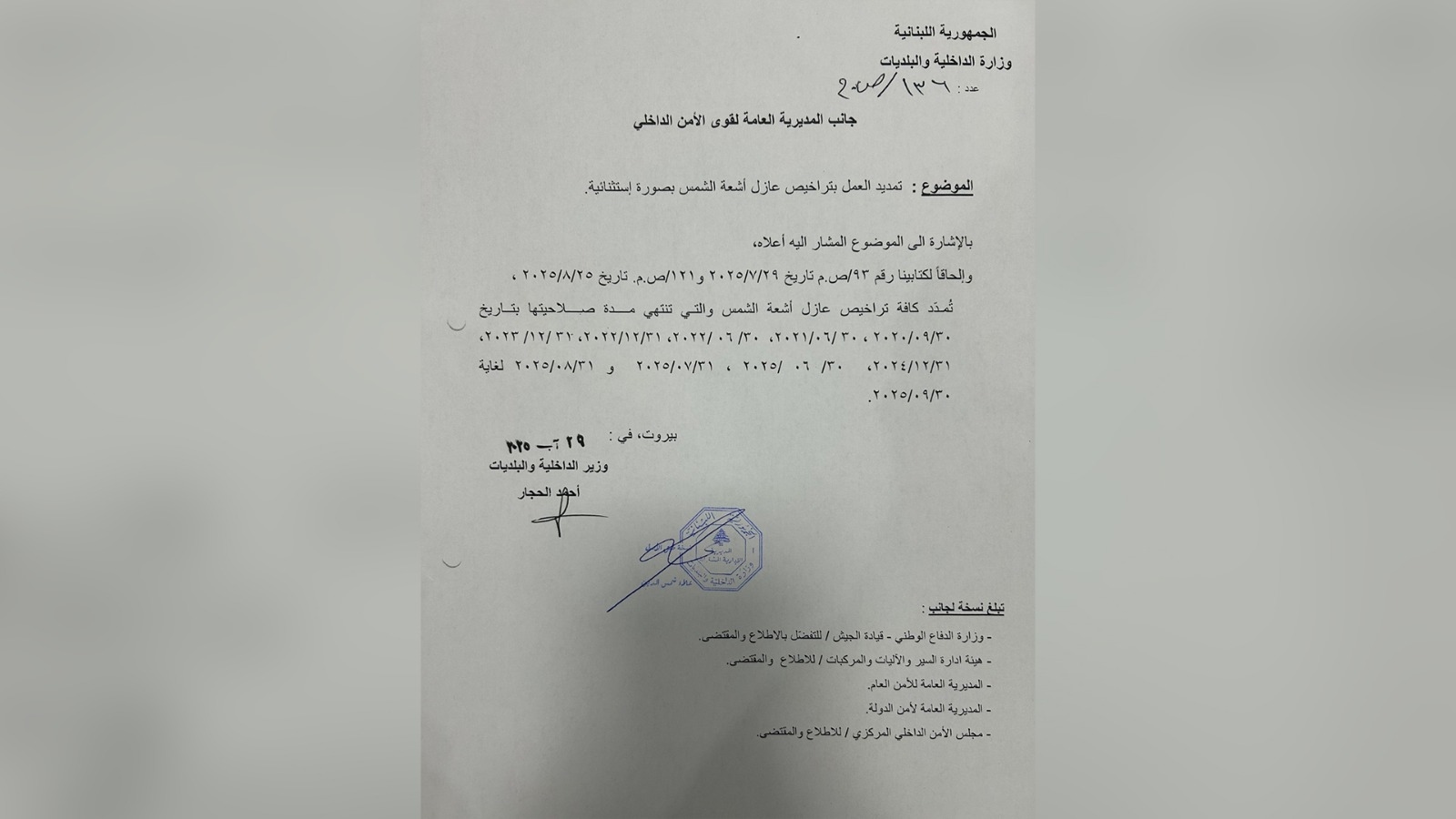 أعلنت وزارة الداخلية والبلديات تمديد العمل بتراخيص عازل أشعة الشمس بصورة استثنائية لغاية 2025 -09-30.