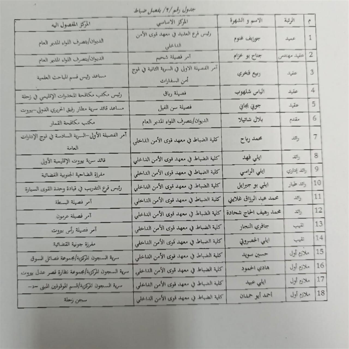 تشكيلات جديدة في قوى الأمن الداخلي حيث شملت 18 اسماً وقد جاءت على النحو التالي: