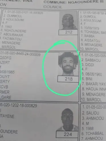 انتشرت على وسائل التواصل الاجتماعي، يوم الأحد، قصة غريبة بعدما ظهرت صورة النجم المصري محمد صلاح على قائمة الناخبين المسجلين في مركز اقتراع بلدة نغاوندري خلال الانتخابات الرئاسية بالكاميرون.