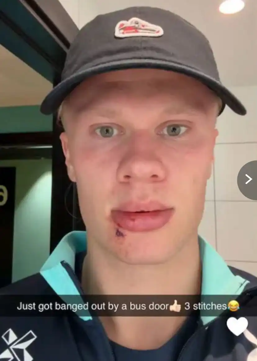 اصطدم بحافلة.. هالاند يتعرض لإصابة في وجهه (صور)