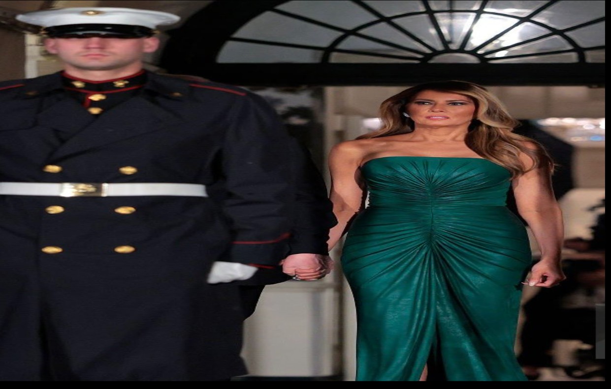 استقبلت السيدة الأميركية الأولى ميلانيا ترامب، برفقة زوجها الرئيس الأميركي دونالد ترامب، ولي العهد السعودي الأمير محمد بن سلمان في البيت الأبيض مساء الثلاثاء، حيث ظهرت بفستان سهرة أنيق باللون الأخضر من توقيع المصمّم اللبناني إيلي صعب.
