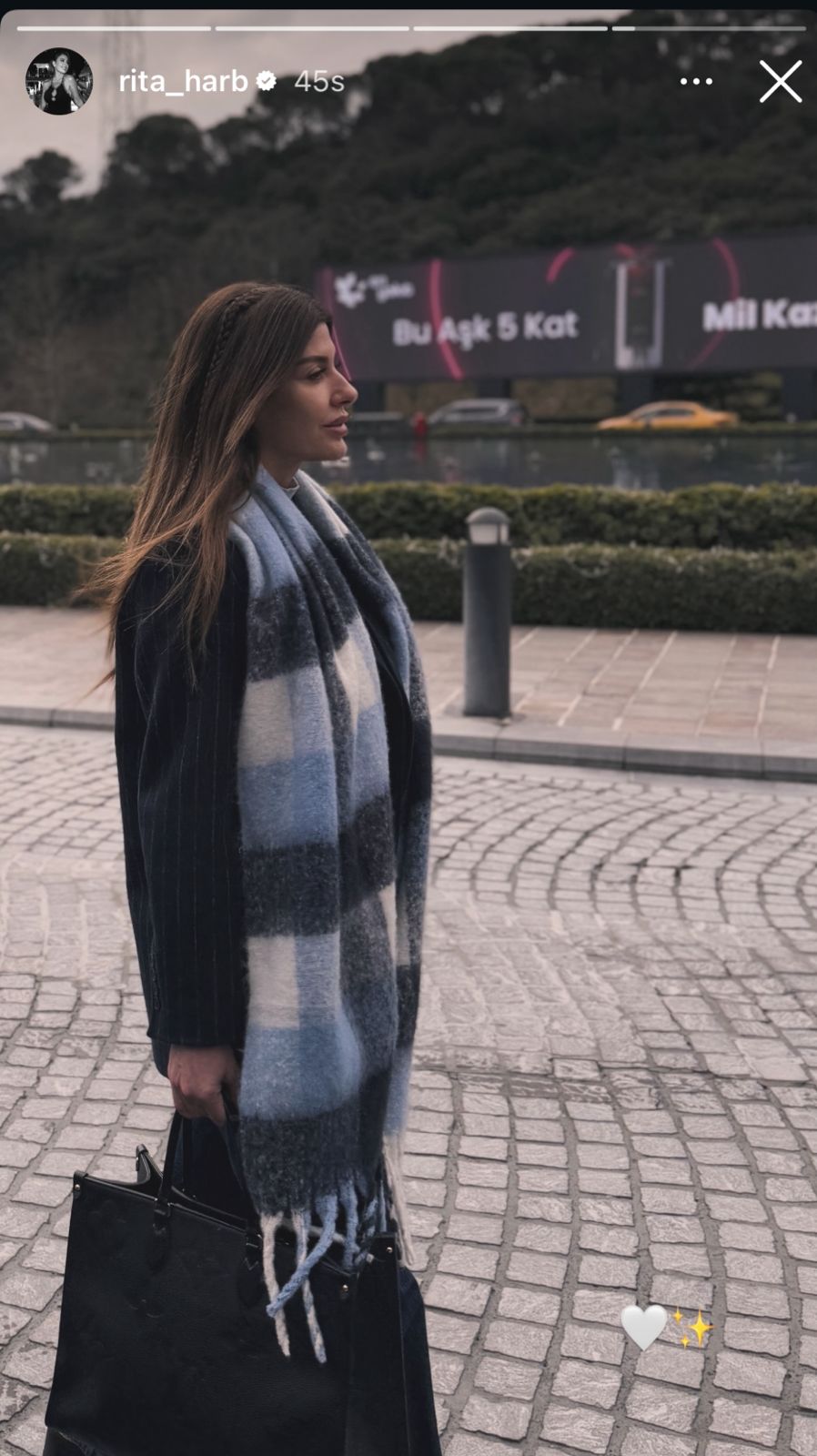نشرت الاعلامية والممثلة ريتا حرب صورة عبر خاصية “الستوري” على حسابها في إنستغرام، ظهرت فيها بإطلالة شتوية أنيقة أثناء تواجدها في أحد الأماكن العامة، مرتديةً معطفاً داكناً ووشاحاً بألوان هادئة.