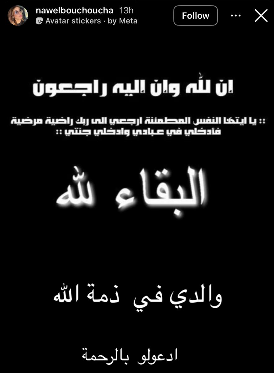 تفاصيل وفاة والد أمل بوشوشة بعد ساعات من اتصال بينهما