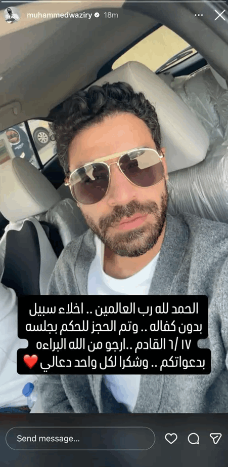وعقب القرار، عبّر وزيري عن ارتياحه عبر حسابه على “إنستغرام”، مؤكدًا تفاؤله بالحصول على البراءة، في أول تعليق له منذ فترة، ما يعكس رغبته في إنهاء هذا الملف القضائي الطويل.
