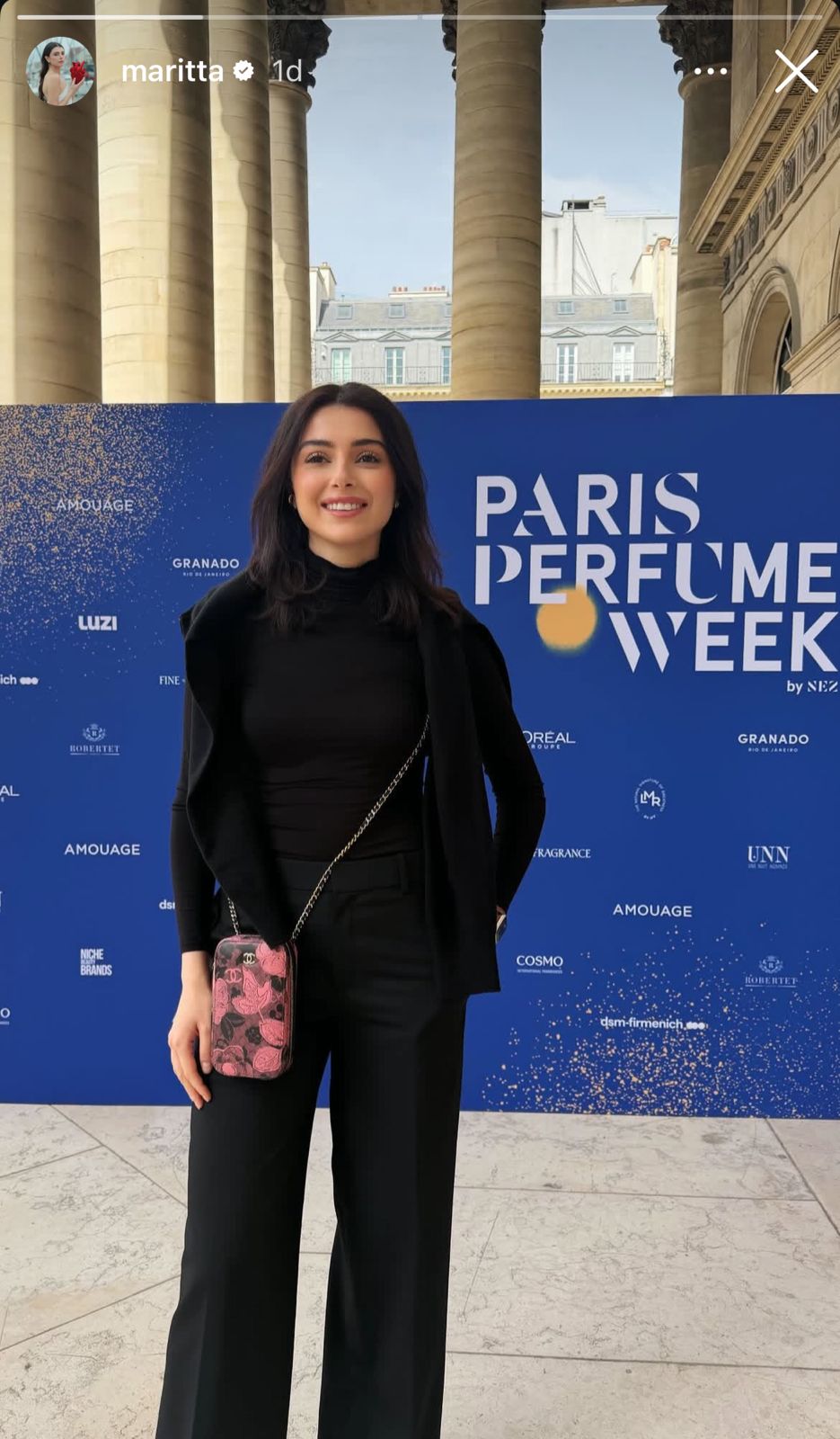 شاركت النجمة ماريتا الحلاني جمهورها عبر مواقع التواصل الاجتماعي صورة من حضورها فعاليات paris Perfume Week في باريس.