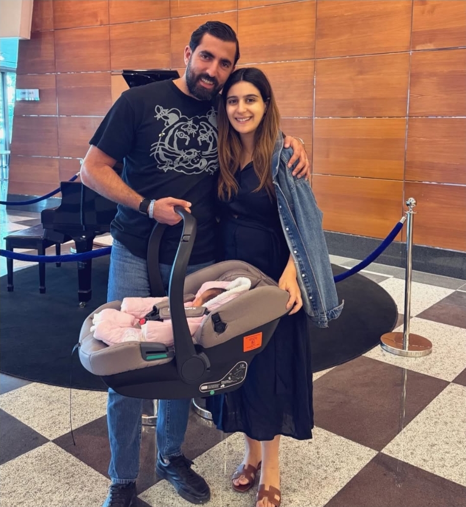 وشاركت بو خليل متابعيها على “انستغرام”، صورة وهي برفقة زوجها وابنتها، خلال مُغادرتهم المستشفى.