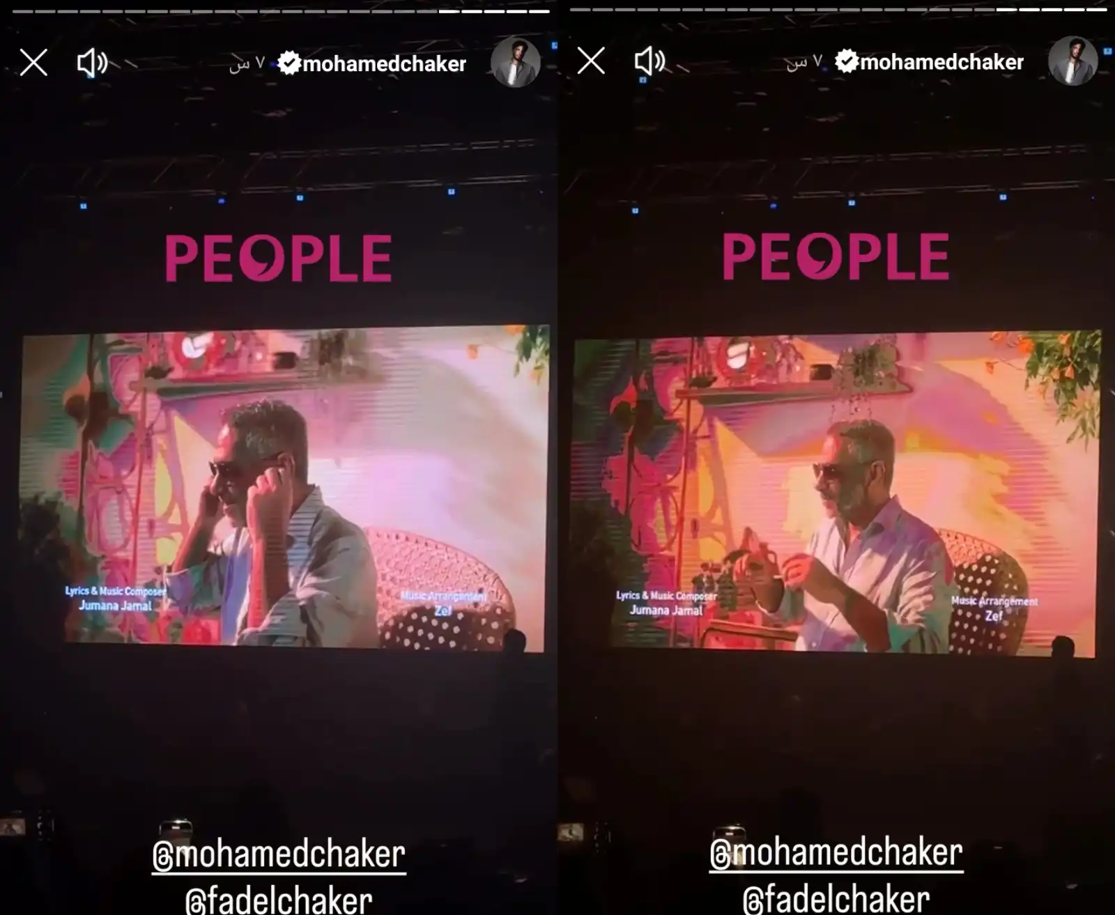 فاجأ محمد فضل شاكر الجمهور في حفله الاخير في بيروت بإيقاف فقرته الغنائية، ليعرض فيديو كليب أغنية والده الجديدة “روح البحر” على الشاشة العملاقة، وسط تصفيق حار وتفاعل كبير من الجمهور.