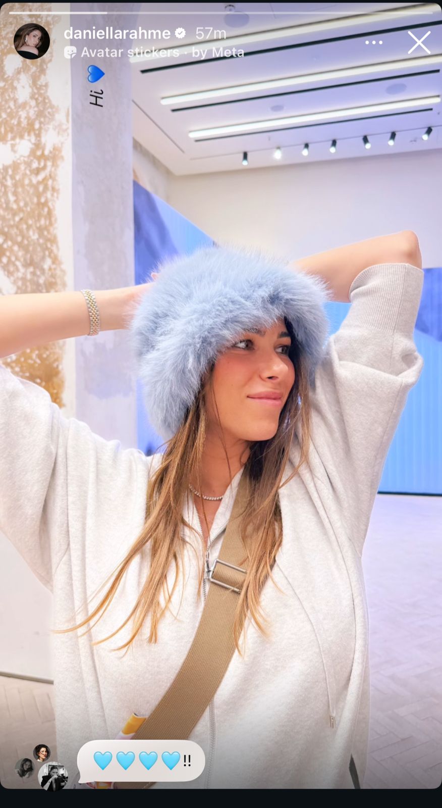 نشرت الممثلة دانييلا رحمة صورة جديدة عبر”ستوري” على حسابها الرسمي في إنستغرام، ظهرت فيها بإطلالة كاجوال ناعمة وعفوية، واختارت قبعة شتوية زرقاء من الفرو الناعم.